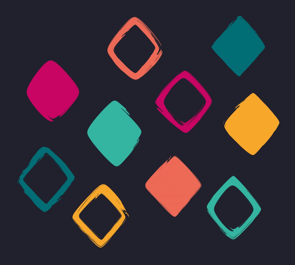 Was Muster anbelangt, sind der Kreativität kaum Grenzen gesetzt, aber auch hier gilt: Vermeide gerade Linien, spitze Ecken und exakte Rundungen! Verwende ausschließlich die Enije Farben, gib den Formen einen Pinsel-Look und dicke, fette Konturen. Auf keinen Fall zu filigran oder zurückhaltend!